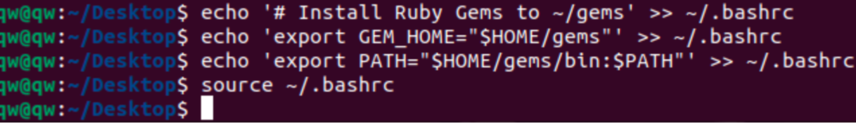 echo 'export PATH="$HOME/gems/bin:$PATH"' >> ~/.bashrc