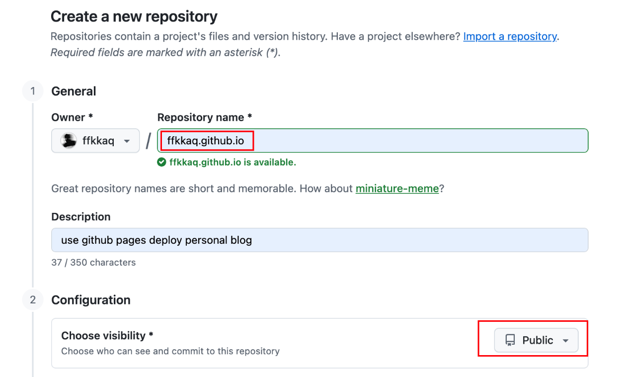 仓库名称为USERNAME.github.io,USERNAME使用自己的 GitHub 用户名