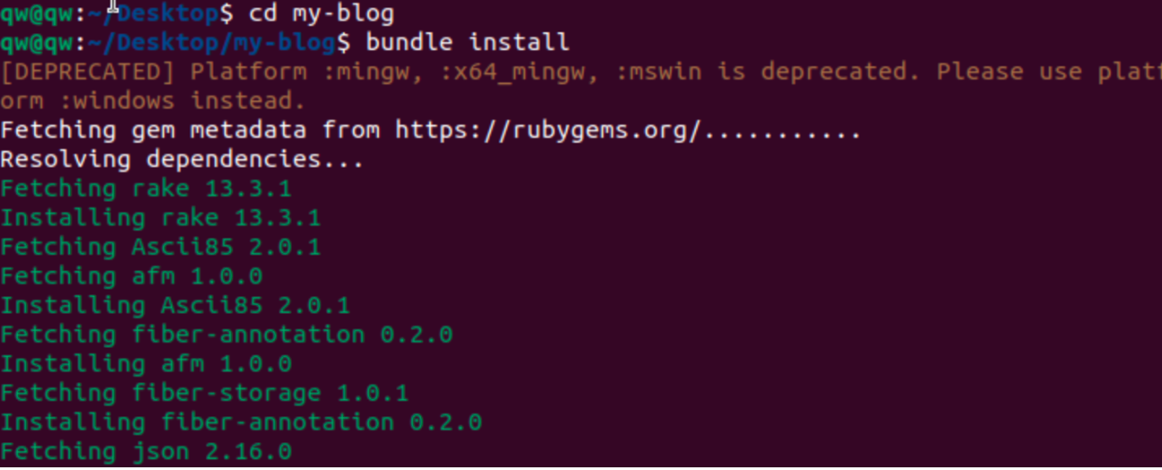 bundle install #安装Jekyll依赖项