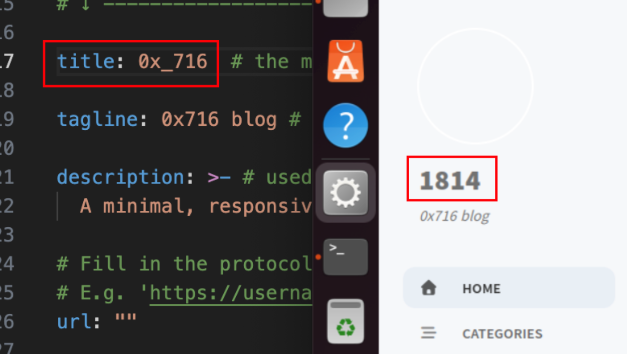 title以及description没有设置的原因是发现了主题的一些小Bug,不知为何,将0x716识别为十六进制的数字,显示为1814,如下图,且设置语言为中文后,description会直接不显示。