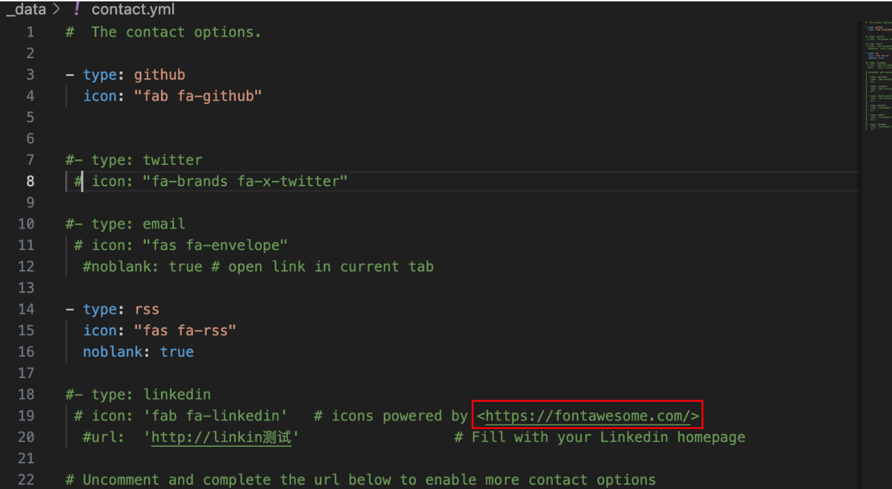 设置/_data/contact.yml 文件来个性化左侧边栏底部的图标