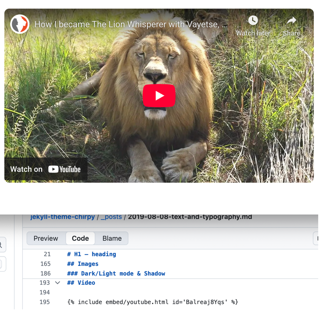 用以下语法嵌入社交媒体平台的视频/音频,语法与效果如下图